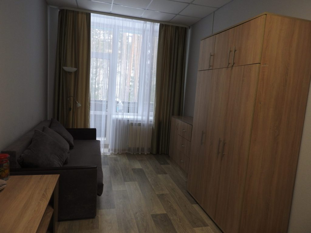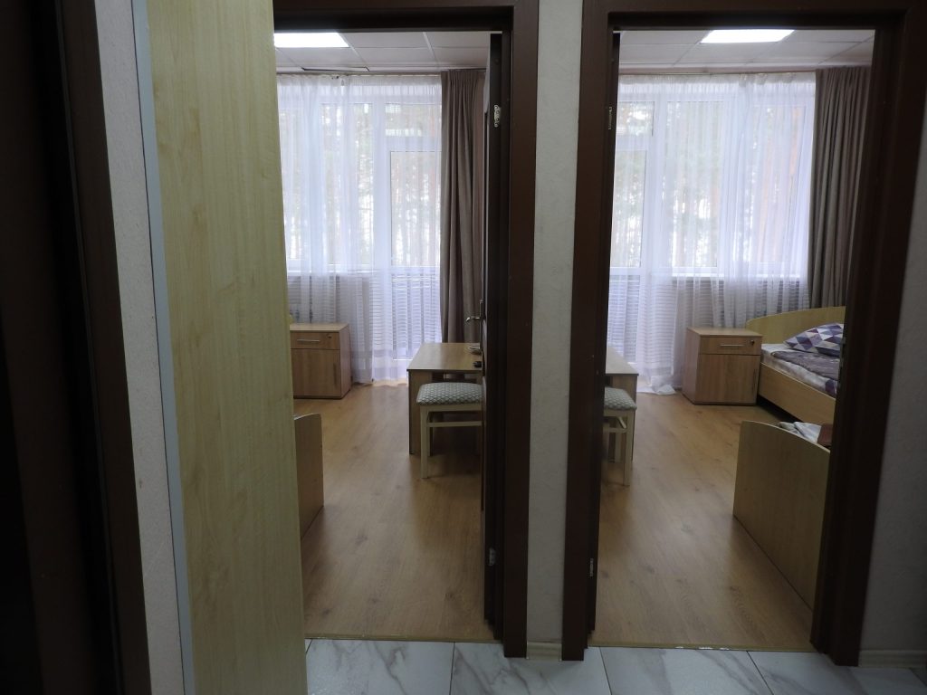 В главном корпусе на первом этаже находится лечебная база, на втором и третьем этажах – жилые номера. Предлагается несколько вариантов размещения.